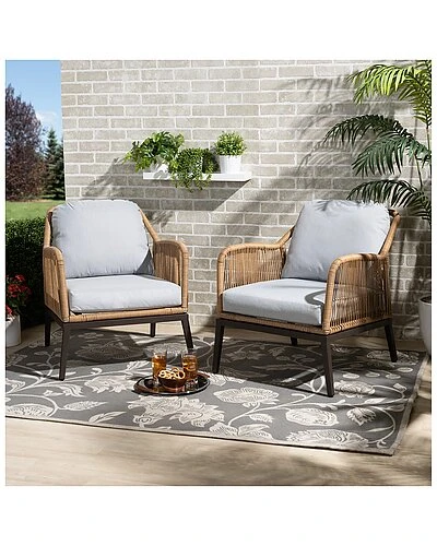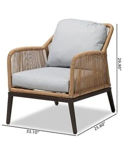 - Add a touch of contemporary flair to your outdoor decor with the stunning Endecott patio chair. This chair is comprised of a solid metal frame wrapped in durable synthetic rattan. Its plush cushioned are padded with layers of soft foam and upholstered in weather-resistant fabric for the perfect lounge spot during warm summer days. Requiring assembly, the Endecott features ergonomic armrests as well as an angled backrest for ultimate relaxation. The finishing touch for any patio or deck area, the Endecott patio chair redefines the outdoor experience. Chair Dimensions: 29.9in High x 33.1in Wide x 25.6in Deep; Seating Area Dimensions 21.25in Wide x24.5in Deep x16.75in High; Arm Height: 24.25in; Legs: 9.75in High; Back: 13.15in High