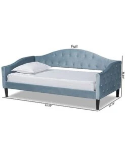 - Serene, elegant design meets luxurious comfort with the Benjamin daybed. Made in Malaysia, this bed is comprised of a sturdy wood frame padded with plush layers of foam and upholstered in luscious velvet fabric. Sweeping curves lend a welcoming silhouette while the button tufted design adds a contemporary touch. The Benjamin requires assembly and utilizes wood slats for mattress support, eliminating the need for a box spring. Tapered feet complete the look, making the Benjamin daybed an alluring addition to any bedroom. Overall Dimensions: 36.00″ High x 82.50″ Wide x 57.70″ Deep; Arm Height(from Floor to Top of Side Panel): 28.10″; Legs:7.10″ High;