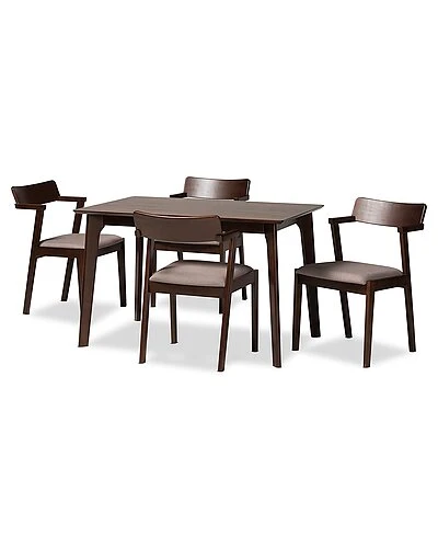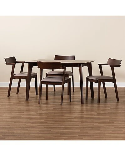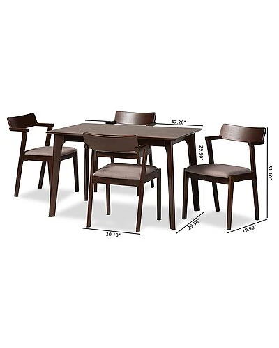 - Capture the allure of modern minimalism while maximizing comfort with the Berenice dining set. Made in Malaysia, this set includes four chairs and one dining table crafted from sturdy wood. The chairs feature a foam-padded cushion upholstered in smooth fabric as well as miniature armrests for superb comfort during meals. The Berenice requires assembly and features a rectangular tabletop to ensure ample space for each member of the table. A spectacular twist on classic design, the Berenice dining set elevates any occasion. Overall Table: 47.20″ W x 29.50″ D x 29.90″ H; Legs: 29.10″; Overall Chair: 20.10″ W x 19.90″ D x 31.10″ H; Seating Area Dimensions: 18.30″ W x 17.30″ D x 18.70″ H; Back: 12.40″ H; Legs: 15.13″ H; Arms: 27.25″ H;