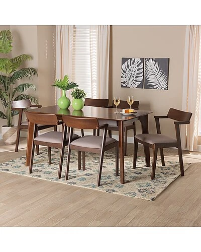 - Capture the allure of modern minimalism while maximizing comfort with the Berenice dining set. Made in Malaysia, this set includes six chairs and one dining table crafted from sturdy wood. The chairs feature a foam-padded cushion upholstered in smooth fabric as well as miniature armrests for superb comfort during meals. The Berenice requires assembly and features a rectangular tabletop to ensure ample space for each member of the table. A spectacular twist on classic design, the Berenice dining set elevates any occasion. Overall Table: 59.10″ W x 35.40″ D x 29.90″ H; Table Legs: 29.10″; Overall Chair(s): 20.10″ W x 19.90″ D x 31.10″ H; Seating Area Dimensions: 18.30″ W x 17.30″ D x 18.70″ H; Back: 12.40″ H; Chair Legs: 15.13″ H; Arms: 27.25″ H;