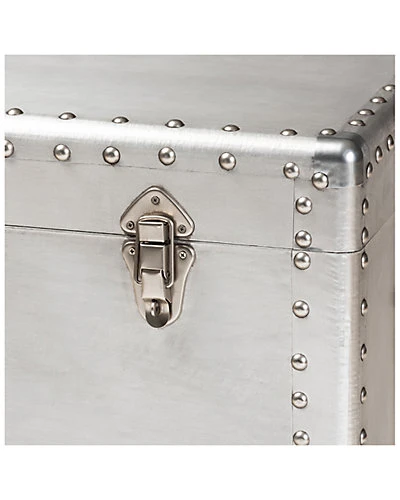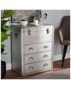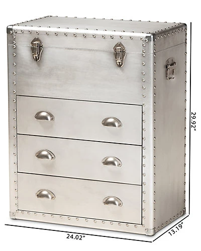 - Design details: Bring chic industrial style into your space with the Serge chest. Constructed from metal, the Serge features a unique lift-top compartment with ample storage space. Three drawers provide additional space to keep items organized. Polished silver metal drawer handles add a sleek touch. Inspired by vintage storage trunks, the Serge is embellished with rivets and corner protectors. This chest is well suited for a living room, bedroom, or entryway. The Serge chest is made in China and will arrive fully assembled.
