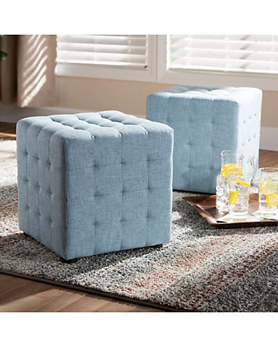 - Design details: Stylish and versatile, the Elladio ottoman is easy to incorporate into any room in the home. Embodying modern design, the ottoman features a cube silhouette complemented by biscuit tufting on all sides. Its wooden frame is upholstered in soft, durable polyester fabric for endless comfort. Black plastic feet complete the look. This multipurpose piece can be used as a seat, footstool, or casual table. The Elladio ottoman is made in Malaysia and will arrive fully assembled.