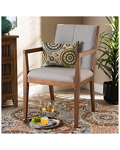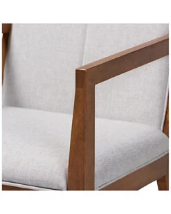 - Transform any space with the mid-century modern Theresa chair. Made from a solid, walnut finished wood base and topped with soft polyester fabric, the Theresa turns any living room or busy office into a relaxing space for guests. Providing a naturally modern feel, the Theresa is made in Malaysia and features angled legs that continue upward to form ergonomic armrests. Square-patterned stitching on the back lends a contemporary look that complements the chair’s clean, streamlined silhouette. The Theresa chair requires assembly and works exceptionally well in areas with limited space. Dimensions: 35.4″ high x 22.8″ wide x 25.4″ deep; Seating dimensions: 18.5″ wide x 17.7″ deep x 19.1″ high (from Floor); Height (from floor to top of arms): 26.8″ high; Back: 16.3″ high; Legs: 17″ high.