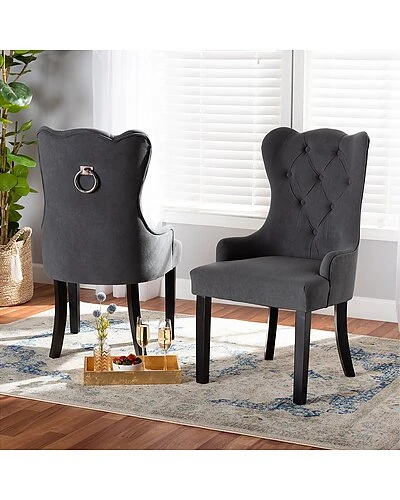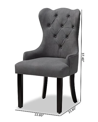 - Generate an atmosphere of grace for every meal with the stunning Fabre dining chair. this set includes two chairs made from sturdy wood. Elegant button tufting framed by smooth curves create a lovely display while miniature armrests offer convenient comfort. Requiring assembly, the Fabre utilizes curved legs for excellent stability and support that forms a graceful silhouette. A remarkable blend of style and comfort, the Fabre dining chair elevates any dining experience. Overall Dimensions: 37.40in High x 22.80in Wide x 25.60in Deep; Seating Area Dimensions: 22.80in Wide x 25.60in Deep x 17.70in Height; Legs: 13.80in High; Back : 19.70in High;
