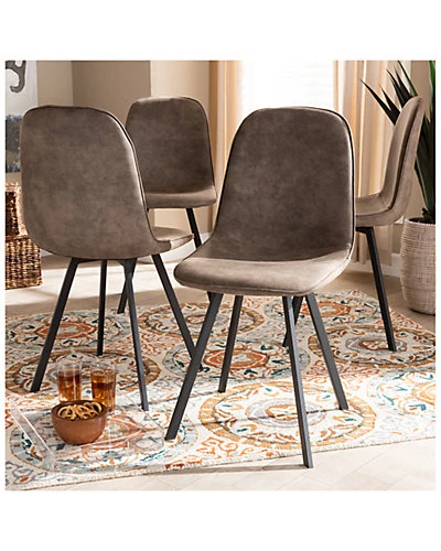 - Design details: Bring a clean, polished look to your dining space with the Filicia chair. This metal chair is upholstered in a sleek, grey and brown imitation leather fabric that feels exceptionally smooth to the touch. Its curved back and foam padding provide ample dining comfort. Stitching and piping add a tailored look, while black splayed legs add a hint of mid-century appeal. The Filicia chair is made in China and requires assembly.