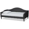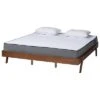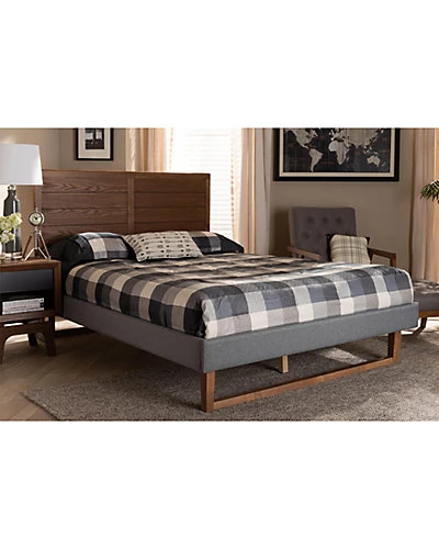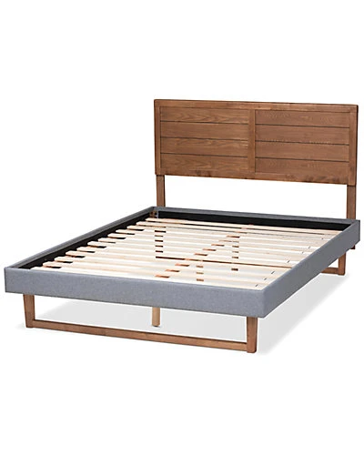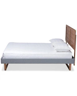 - Adorn your bedroom with the warm wood tones and dark grey fabric found in the rustic modern Gabriela bed. The Gabriela bed utilizes a paneled wood headboard finished in an ash walnut brown, perfect for leaning against to read or watch television. Made in Malaysia, the Gabriela features a soft, fabric upholstered platform base that eliminates the need for a box spring. The Gabriela requires assembly and comes with six pre-drilled holes on the headboard to provide five unique height options for a customized setup. Bring a cozy yet stylish ambiance to any bedroom with the inviting Gabriela bed. Dimensions: 58.3″ high x 79.5″ wide x 83.4″ deep; Headboard: 58.3″ wide x 78.1″ long x 0.9″ thick; Height from floor to top of slat: 11.8″ high; Legs: 9.1″ high; Inside dimensions (mattress size): 76″ wide x 80″ deep.