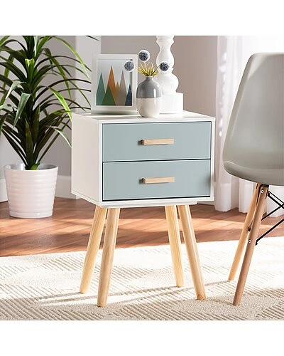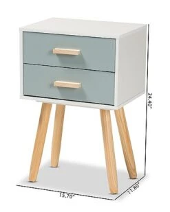 - Utilize your bedroom space with the handy design of the Giles nightstand. this nightstand is crafted from sturdy wood. Two drawers provide convenient storage for all your bedside essentials and reserve the tabletop for nightly use. Requiring assembly, the Giles is supported by angled legs that lend a striking silhouette. Blending modern convenience and sleek, efficient design, the Giles nightstand enhances any bedroom. Overall Dimensions: 24.40in High x 15.70in Wide x 11.80in Deep; Drawer Dimensions: 14.60in Wide x 10.40in Deep x 4.70in High; Legs: 12.80in High;