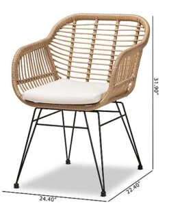 - Take advantage of warm summer days with the relaxing embrace of the Giorgia patio chair. This chair is comprised of a metal frame wrapped in synthetic rattan. Slim metal legs provide excellent stability and support while conveying modern minimalist appeal. The Giorgia requires assembly and features smooth armrests for ergonomic comfort. Perfect for lounging in nature, the Giorgia patio chair transforms any backyard or deck area. Chair Dimensions: 31.9in High x 24.4in Wide x 22.4in Deep; Seating Area Dimensions 15in Wide x17.25in Deep x19in High; Arm Height: 27in; Legs: 16.5in High; Back: 12.9in High