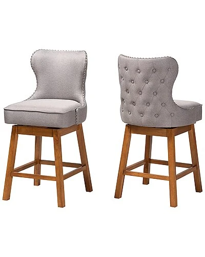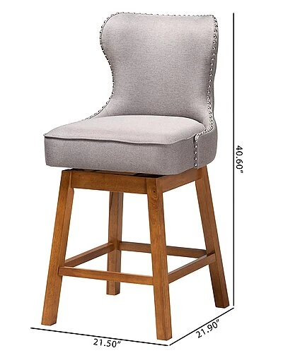 - Featuring chic, modern design, the Gradisca counter stool is a superb addition to any kitchen or lounge area. this sleek piece consists of a solid wood frame padded with foam and upholstered in soft fabric. Its cut-out backrest features a gorgeous button tufted design outlined by an elegant nail head trim for a touch of modern glamour. The Gradisca requires assembly and features ergonomic footrests on each side for enhanced comfort. A swivel seat encourages carefree leisure, making the Gradisca counter stool a lovely choice for any occasion.