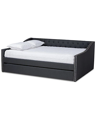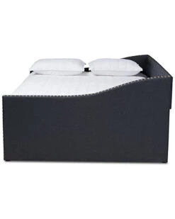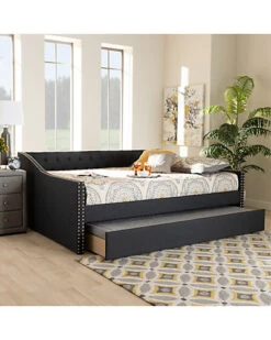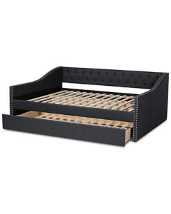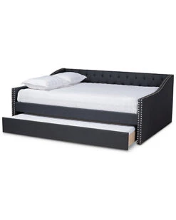 - Design details: Embrace midday naps and restful nights of sleep with the Haylie daybed. This wood daybed is upholstered in a soft, resilient polyester fabric and is padded with foam for the utmost comfort. Button tufting lends a classic look, while silver nailheads highlight the elegant curves on the side panels. Designed for both style and function, the Haylie is fitted with a roll-out twin size trundle bed to provide convenient accommodation for overnight guests. The Haylie daybed is made in Malaysia and requires assembly.