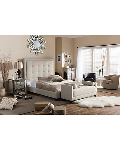 - Design details: linen, foam, and wood construction; padded headboard, footboard and side rails, button-tufted, nail head trim, platform bed