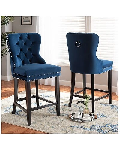 - Elegant in design with superb comfort, the Howell counter stool elevates any home bar or lounge area. the Howell is comprised of a dark brown finished wood frame padded with soft foam and upholstered in smooth velvet fabric. Chic button tufting lends plush comfort and classic appeal, while a silver metal ring pull on the back adds contemporary glamour. Requiring assembly, the stool is fitted with an ergonomic footrest for added comfort. Adorned with silver metal studs that accentuate its regal silhouette, the Howell counter stool upgrades both the style and functionality of any space Dimensions: 42.1″ High x 20.5″ Wide x 22.8″ Deep; Seating Dimensions: 26″ High (from Floor) x 20.5″ Wide x 17.7″ Deep; Legs: 21.7″ High