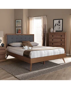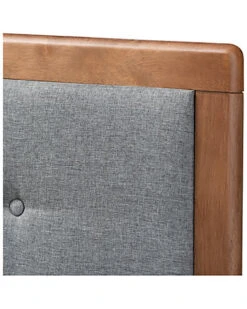 - Design details: Revamp your bedroom with the retro charm of the Ines bed. Built with a low platform set on top of angled, tapered legs, the Ines displays all the elements of cool mid-century modern design. The headboard is upholstered in a soft, resilient polyester fabric framed by wood for a clean, contemporary look. Button tufting adds a touch of refinement. Constructed from wood, the Ines features a warm walnut brown finish that complements any color palette. The Ines bed is made in Malaysia and requires assembly.