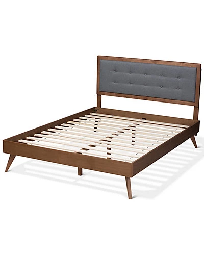 - Design details: Revamp your bedroom with the retro charm of the Ines bed. Built with a low platform set on top of angled, tapered legs, the Ines displays all the elements of cool mid-century modern design. The headboard is upholstered in a soft, resilient polyester fabric framed by wood for a clean, contemporary look. Button tufting adds a touch of refinement. Constructed from wood, the Ines features a warm walnut brown finish that complements any color palette. The Ines bed is made in Malaysia and requires assembly.