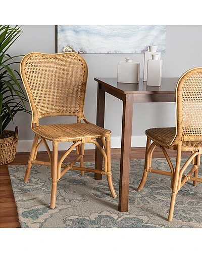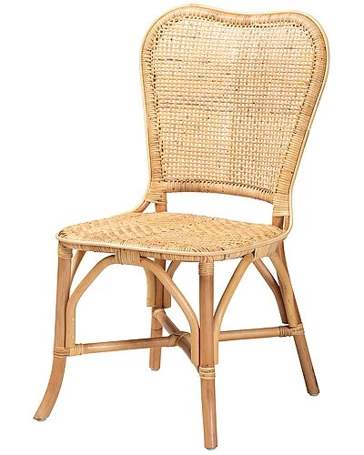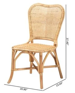 - Dine within an aura of casual bliss with the chic, boho vibes emanating from the Irene dining chair. Handmade, this bohemian style piece is entirely comprised of natural rattan. Its tapered backrest creates a distinct silhouette while woven rattan embellishments offer a smooth embrace. The Irene will arrive fully assembled and utilizes angled legs connected by a crisscross base for excellent stability and support. Encapsulating the allure of exotic craftsmanship, the Irene dining chair uplifts any occasion.