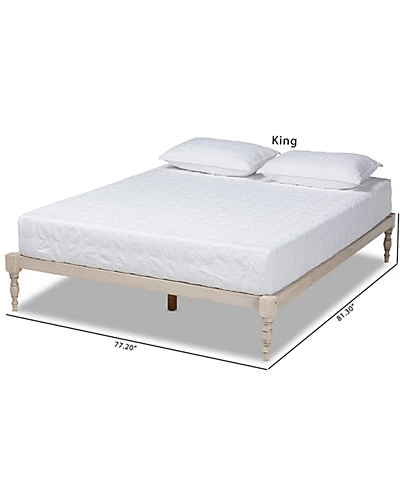 - Design details: Keep your bed setup cool and casual with the Iseline bed frame. Crafted from solid rubberwood, the Iseline features a chic antique white finish. Its low platform provides a modern feel, while turned legs lend an old-world charm. Add some crisp white sheets and a plush duvet to create a cozy retreat. This bed includes wood slats, which eliminate the need for a box spring. The Iseline bed frame is made in Malaysia and requires assembly.