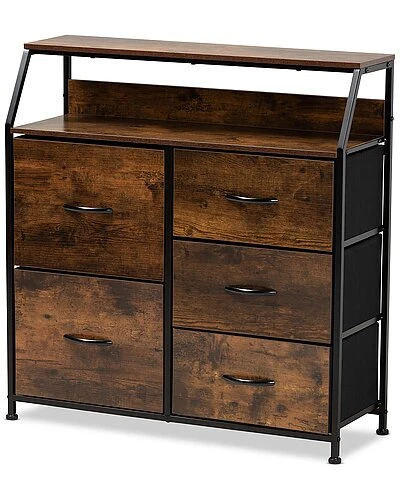 - The versatile Jacop storage cabinet expands the capabilities of your home. Made in China, this cabinet is comprised of a solid metal frame fitted with sturdy wood shelves and fabric upholstered drawers. The open shelf and wide tabletop create an eye-catching display for home decorations while five drawers offer storage to organize and declutter your interior. Requiring assembly, the Jacop is adorned with curved drawer handles for a sleek, industrial touch. A stunning rendition of modern industrial design, the Jacop storage cabinet is sure to leave an impression. Overall Dimensions: 38.00″ High x 23.60″ Wide x 15.40″ Deep; Drawer Dimension: 22.00″ Wide x 15.00″ Deep x 8.50″ High; Open Storage Dimension: 21.90″ Wide x 14.90″ Deep x 8.40″ High;