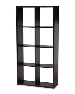 - Design details: Display your favorite objects on the Janne shelf. Constructed from wood, the Janne features a dark brown finish for a refined look. Eight shelves provide space to display books, decor, and more. This versatile piece is well suited for a living room or home office. The Janne shelf is made in Malaysia and requires assembly.