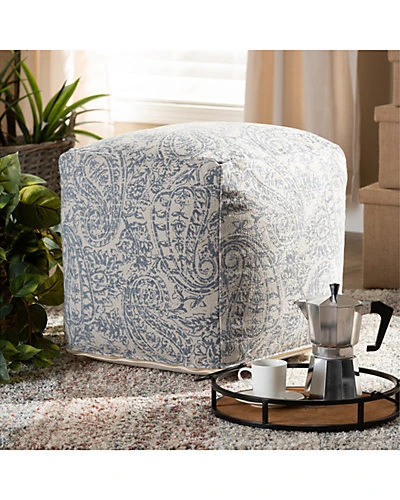 - Design details: Add a cozy, modern touch to any space with the Juvita pouf. Handwoven from cotton canvas and polyester net, the Juvita features an elegant blend of grey and blue tones. A stylish paisley print compliments the understated color palette. This versatile piece can be used as a seat, footstool, or casual coffee table. Made in India.