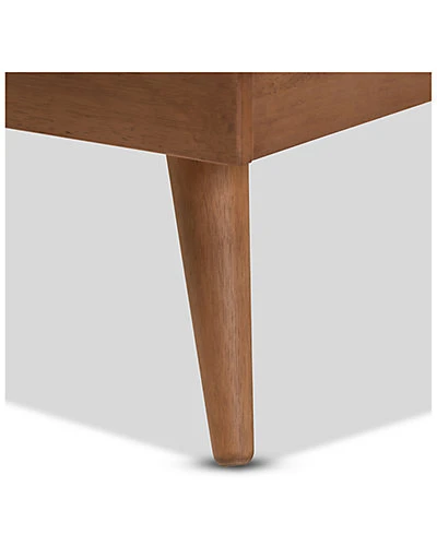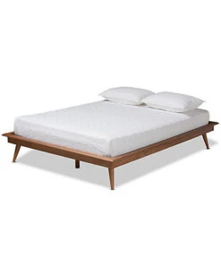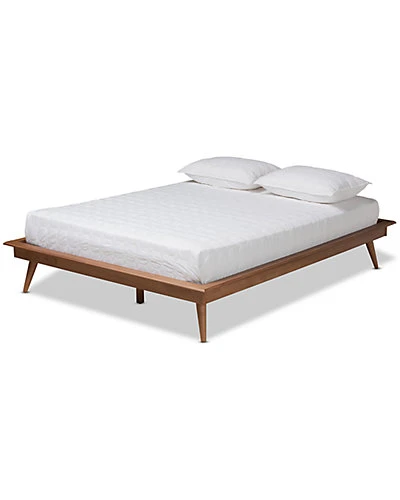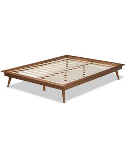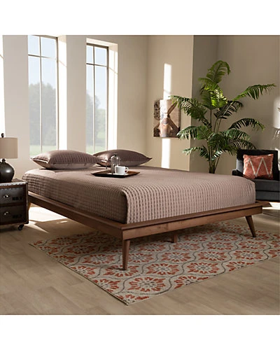 - Design details: A contemporary rendition of retro mid-century style, the Karine bed frame brings clean lines and warm wood tones into your bedroom. Crafted from sturdy wood, the Karine features a classic walnut brown finish that complements any color palette. Its low platform and angled, tapered legs are reminiscent of cool, mid-century modern style. Add some crisp white sheets and a plush duvet to complete the look. This bed includes wood slats, which eliminate the need for a box spring. The Karine bed frame is made in Malaysia and requires assembly.