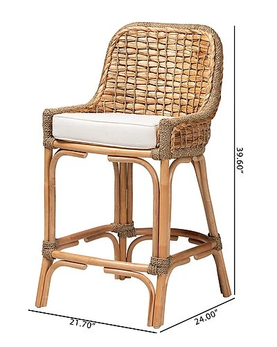 - Bestow an air of ease to your space with the calm, soothing tones of the Kyle counter stool. Made in Indonesia, this stool is comprised of natural rattan semi pole frame embellished with handcrafted seagrass weave. Its seat features a removeable fabric upholstered cushion for outstanding comfort. The Kyle will arrive fully assembled and features an ergonomic footrest for enhanced comfort. Capturing the luxurious comfort of a tropical escape, the Kyle counter stool elevates the mood of any lounge.