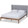 - Utilize your bedroom space to the fullest with the Lene bed. the Lene is constructed from sturdy wood finished in a neutral ash walnut to easily blend in with a large variety of room layouts and styles. Three underside drawers located on one side of the frame supply superb storage potential while maximizing floor space. Assembly is required and a box spring is not needed, as the bed comes with internal slats for mattress support. The headboard is padded with foam and upholstered in smooth fabric accented with button tufting, making the Lene bed a cozy and efficient addition to any bedroom. Over all Dimensions: 58.3″ High x 79.5″ Wide x 83.7″ Deep; Headboard Dimensions: 22.4″ High x 78.1″ Wide x 0.9″ Thick; Dimensions: 13″ High x 79.5″ Wide x 82.8″ Deep; Slats: 78″ Wide x 2.5″ Long x 0.6″ Thick; Top of Slat: 11.8″ High; Legs: 9.1″ High; Inside Dimensions (Mattress Size): 76″ Wide x 80″ Deep; Storage dimensions: 25.5 Wide X 14.1″ Deep X 7.9″ High