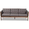 - Design details: With its retro silhouettes and plush cushions, the Lenne living room set unites style and comfort. Built from sturdy wood, the Lenne set includes one sofa, one loveseat, and one armchair. Each piece is upholstered in a soft grey polyester fabric that complements the walnut brown finish on the wood. Inspired by mid-century design, the pieces feature a clean, tailored profile elevated by rows of button tufting on the back cushions. The Lenne set is well suited for both private residences and public reception spaces. The Lenne living room set is made in Malaysia and requires assembly.