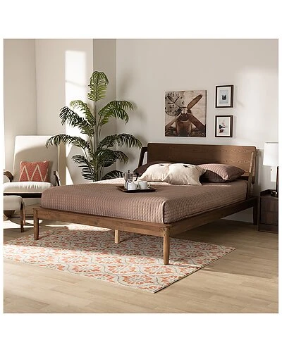 - Enhance your bedroom with the warm wood tones and clean lines of the Sadler bed. Made in Malaysia, the Sadler is comprised of a sturdy ash walnut finished wood frame that features a low profile to provide a more open feel in tight spaces. Its rounded headboard and tapered legs lend a charming retro look, while angular arms and an extended footboard showcase elements of modern design. Assembly is required and box spring is not needed, as the Sadler comes with internal slats for mattress support. Complementary to a wide variety of room layouts and styles, the Sadler bed elevates any bedroom. Overall Dimensions: 38.4″ High(from floor to top of headbord) x 79.5″ Wide x 86.5″ Deep; Headboard: 18.5″ Wide x 79.5″ Long x 0.8″ Deep; Headboard Thickness: 0.8″ Thick; Distance from top of slat to bottom of headbord: 7.5″ High; Distance between slats: 3.5″; Height from floor to top of slat: 12.2″ High; Legs: 14″ High