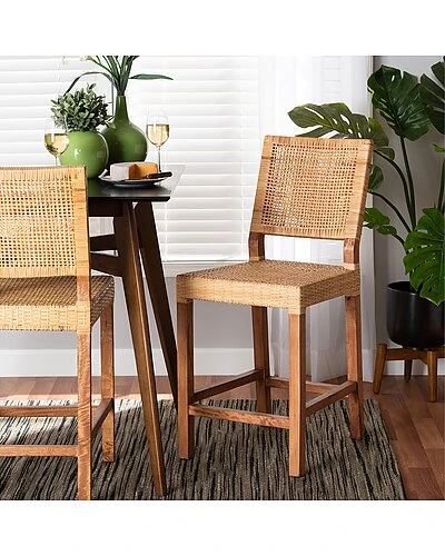 - Fashion a cherished arrangement in your lounge with the delightful Lesia counter stool. Made in Indonesia, this stool is comprised of a study mahogany wood frame wrapped in natural rattan. The square backrest forms a crisp silhouette, while woven detailing highlights the intricate craftsmanship of the piece. The Lesia will arrive fully assembled and features a convenient footrest for enhanced comfort. Perfect for indulging with friends and family, the Lesia counter stool elevates any occasion.