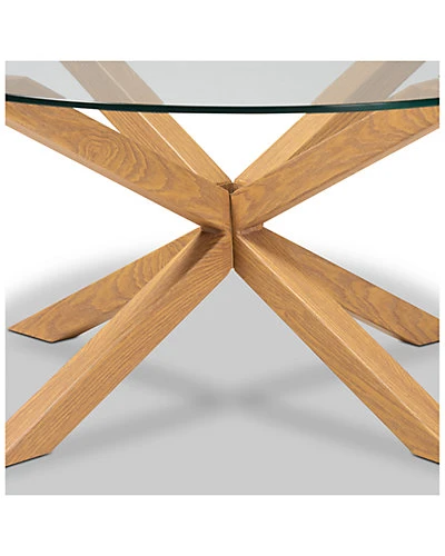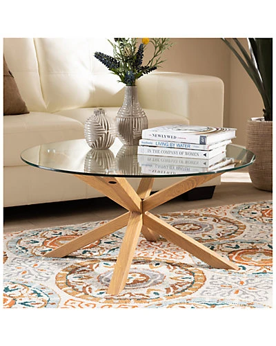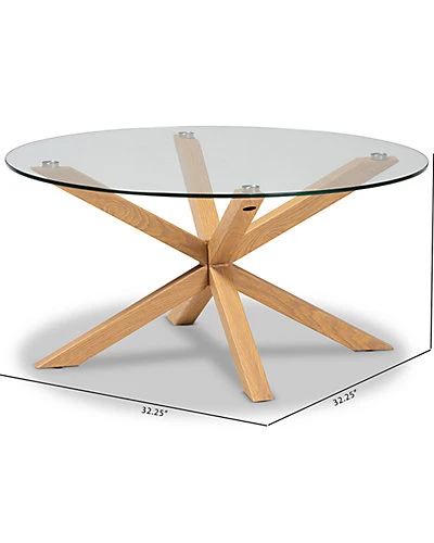 - Design details: Create a striking focal point in your living space with the Lida coffee table. The Lida features a round glass tabletop that gives any space an open, airy feel. The clear glass highlights the unique sculptural base, constructed from metal overlaid with a woodgrain finish. Place a few books and a potted plant on top to complete the look. The Lida coffee table is made in China and requires assembly.