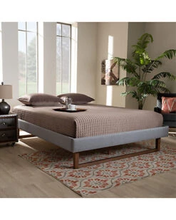 - Design details: Warm wood tones are paired with soft fabric upholstery to give the Liliya bed frame a stylish and cozy feel. Built with a sturdy wood frame, the Liliya features a low platform upholstered in a soft, durable grey fabric that complements the walnut brown finish on the wood. Add some crisp white sheets and a plush duvet to complete the look. This bed includes wood slats, which eliminate the need for a box spring. The Liliya bed frame is made in Malaysia and requires assembly.