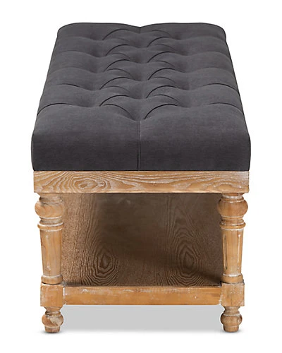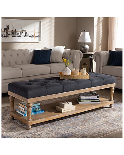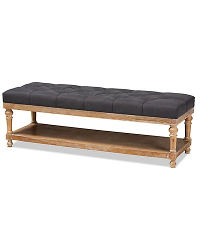 - Add a touch of sophisticated grace to your home with the Linda bench. Made in Malaysia, the Linda is fitted with a lower storage shelf made out of greywashed wood to hold shoes, decorations, or supplies. Padded with foam for the utmost comfort, the Linda is upholstered in linen fabric and enhanced with elegant button tufting. Excellent craftmanship adds a weathered feel to the piece, giving the bench a hint of rustic charm. The Linda requires assembly and is the perfect accent in rooms with open space. Spruce up any modern foyer or entrance room with the stylish utility found in the Linda storage bench. Dimensions: 19″ high x 57.5″ wide x 18.9″ deep; Seating dimensions: 56.5″ wide x 18.5″ deep x 19″ high (from Floor); Legs: 2.25″ high; Shelf dimensions: 56″ wide x 17.75″ deep x 10″ high.