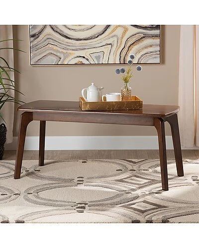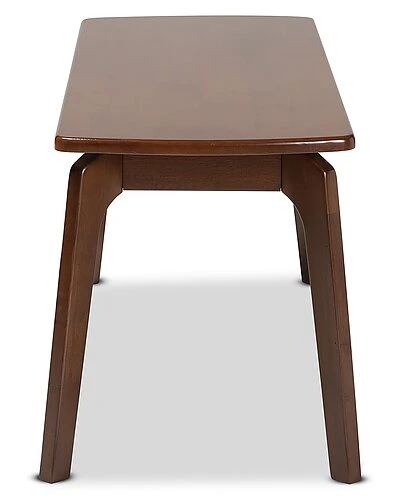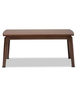 - Gather around the dinner table with the versatile Linden dining bench. Made in Malaysia, this attractive piece is crafted from solid wood. Its wide seat comfortably accommodates up to two people while rounded corners lend a smooth outline. The Linden requires assembly and features angled legs for excellent stability and support in expressive design. An easy addition for both large and small dining areas, the Linden dining bench expands the potential of any occasion. Overall Dimensions: 41.30″ W x 15.70″ D x 18.50″ H; Legs: 15.25″ H;