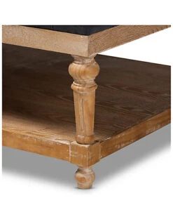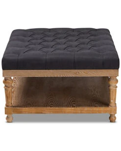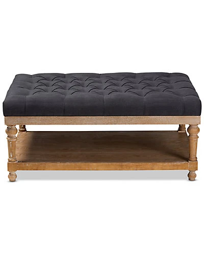 - Add a touch of sophisticated grace to your home with the Lindsey ottoman. Made in Malaysia, the Lindsey is fitted with a lower storage shelf made out of greywashed wood to hold books, movies, or decorations. Padded with foam for the utmost comfort, the Lindsey is upholstered in linen fabric and enhanced with elegant button tufting. Excellent craftmanship adds a weathered feel to the piece, giving the ottoman a hint of rustic charm. The Lindsey requires assembly and is the perfect accent in rooms with open space. Spruce up any modern living room with the stylish utility found in the Lindsey ottoman. Dimensions: 18.5″ high x 42.1″ wide x 30.7″ deep; Seating dimensions: 41.75″ wide x 30″ deep x 18.5″ high (from Floor); Legs: 2.25″ high; Shelf dimensions: 40.75″ wide x 29.75″ deep x 10.25″ high.