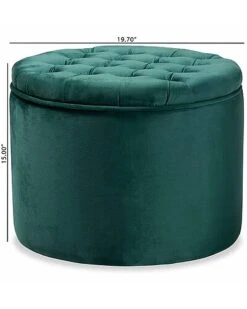 - Boast a luxuriant atmosphere in your space with the wonderful versatility of the Livana storage ottoman. this ottoman is comprised of a sturdy wood frame padded with foam and upholstered in luscious velvet fabric. Its rounded cushion is removable and reveals a convenient storage compartment for extra pillows and blankets. The Livana will arrive fully assembled and features an elegant button tufted design for a charming, refined touch. A stunning combination of beauty and utility, the Livana storage ottoman embellishes any space with modern flair. Overall Dimensions: 15.00in High x 19.70in Wide x 19.70in Deep;