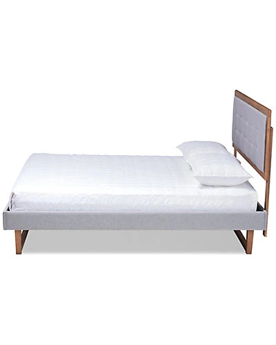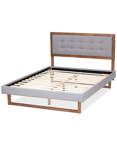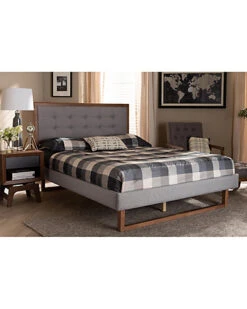 - Revamp your bedroom with the classic charm of the modern transitional Livinia bed. The Livinia bed features an wood headboard that is padded with foam underneath soft and resilient polyester fabric. Made in Malaysia, the bed includes an upholstered platform base fitted with wooden slats, eliminating the need for a box spring. The Livinia requires assembly and comes with six pre-drilled holes on the headboard to provide five unique height options for a customized setup. Bring a cozy yet stylish ambiance to any bedroom with the inviting Livinia bed. Dimensions: 58.3″ high x 57.1″ wide x 78.3″ deep; Headboard: 58.3″ wide x 55.9″ long x 0.9″ thick; Height from floor to top of slat: 11.8″ high; Legs: 9.1″ high; Inside dimensions (mattress size): 54″ wide x 74″ deep.