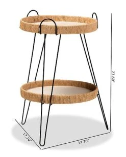 - With a stunning, streamlined design, the Lorcan end table adds an eye-catching accent to your space. Made in China, this table is comprised of a solid metal frame fitted with two trays. Each tray is encircled by woven seagrass accents, lending a touch of retro charm to the convenient design of the table. The Lorcan requires assembly and features slim, hairpin legs for excellent stability and support while allowing light to flow more freely throughout the room. A unique and practical addition, the Lorcan end table is sure to leave an impression. Overall Dimensions: 27.60″ High x 17.70″ Wide x 17.70″ Deep; Open Storage Dimension: 17.30″ Wide x 17.30″ Deep x 1.60″ High; Legs: 9.10″ High;