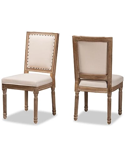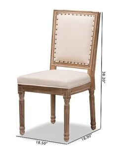 - Craft a charming dining room atmosphere with the old-world inspired design of the Louane dining chair. Made in China, this chair is comprised of a study wood frame padded with plush layers of foam and upholstered in smooth fabric. With a square backrest, this chair is adorned with a vintage nail head trim as well as molded accents that convey a classic, antique-like feel. Requiring assembly, the Louane features turned legs that lends an elegant outline while providing the chair with excellent stability and support. A remarkable piece that encapsulates old-fashioned glamour, the Louane dining chair elevates any occasion. Overall Dimensions: 38.20″ High x 18.50″ Wide x 18.90″ Deep; Seating Area Dimensions: 18.50″ Wide x 18.90″ Deep x 18.75″ High; Legs: 16.50″ High; Back: 19.00″ High;