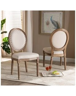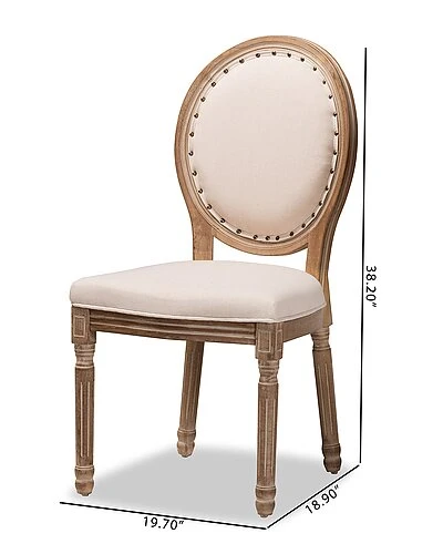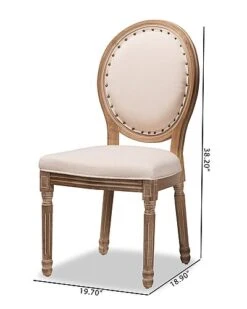 - Craft a charming dining room atmosphere with the old-world inspired design of the Louis dining chair. Made in China, this chair is comprised of a study wood frame padded with plush layers of foam and upholstered in smooth fabric. With a rounded backrest, this chair is adorned with a vintage nail head trim as well as molded accents that convey a classic, antique-like feel. Requiring assembly, the Louis features turned legs that lends an elegant outline while providing the chair with excellent stability and support. A remarkable piece that encapsulates old-fashioned glamour, the Louis dining chair elevates any occasion. Overall Dimensions: 38.20″ High x 19.70″ Wide x 18.90″ Deep; Seating Area Dimensions: 19.70″ Wide x 18.90″ Deep x 18.75″ High; Legs: 16.50″ High; Back: 20.00″ High;