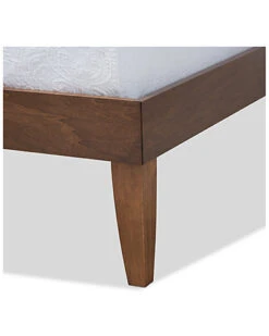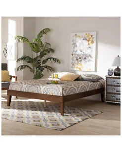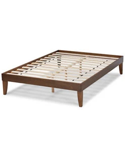 - Design details: Bring clean, modern design into your bedroom with the Lucina bed frame. Constructed from wood, the Lucina features a classic walnut brown finish that adds warmth to any space. Its low platform and angled, tapered legs are reminiscent of cool, mid-century modern style. Add some crisp white sheets and a plush duvet to complete the look. This bed includes wood slats, which eliminate the need for a box spring. The Lucina bed frame is made in Malaysia and requires assembly.