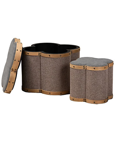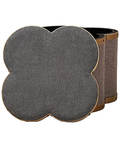 - Design details: Bring comfortable fashion to your living room with the Marilyn ottoman set. Made in China, the larger piece features a removable top that makes its unique clover shape perfect for storing soft items like blankets or pillows. The exterior of the pieces are covered in a knitted fabric to complement your carpet or rugs. Fully assembled, the top of each ottoman is padded with foam underneath a layer of grey fabric for ample comfort. Oak brown finished wood bands accented with metal studs line the edges of the ottomans to add rustic charm. Small Ottoman Dimensions: 12.6″ high x 12.4″ wide x 12.4″ deep; Seating dimensions: 12.4″ wide x 12.4″ deep x 12.6″ high (from Floor); Inner storage dimensions: 11.2″ wide x 11.2″ deep x 11.4″ high; Large Ottoman Dimensions: 16.5″ high x 17.3″ wide x 17.3″ deep; Seating dimensions: 17.3″ wide x 17.3″ deep x 16.5″ high (from Floor); Inner storage dimensions: 16.1″ wide x 16.1″ deep x 15.4″ high.