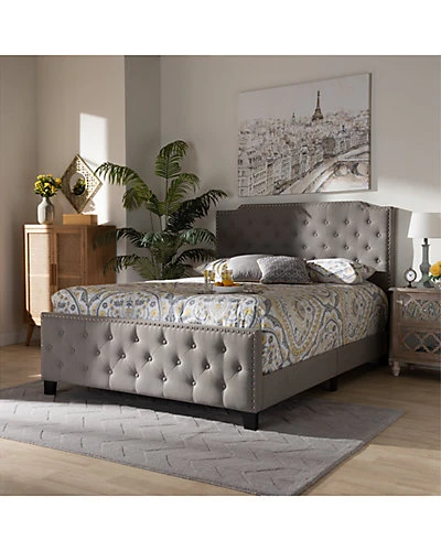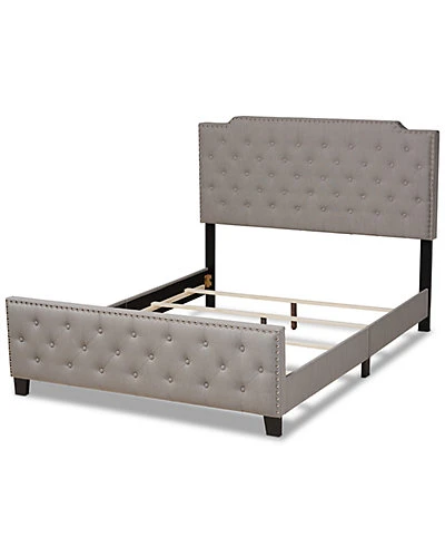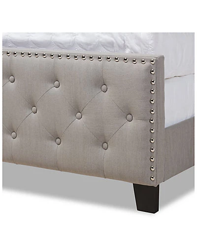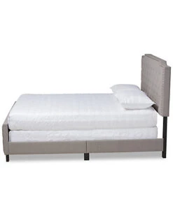 - Design details: Sweet dreams await with the Marion bed. Crafted with a sturdy wood frame, the Marion is upholstered in an elegant linen-like fabric and padded with foam for the utmost relaxation. Glamorous silver nailheads accentuate the headboard and footboard silhouettes, while button tufting lends a regal look. Black tapered feet add a sleek touch. This bed requires a box spring for use. The Marion bed is made in Malaysia and requires assembly.