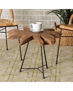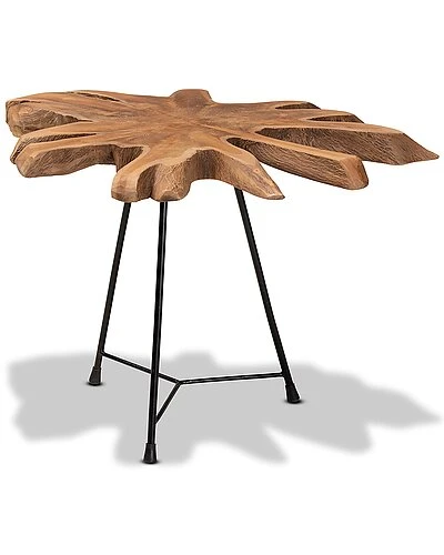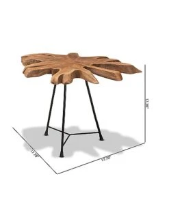 - Bring a touch of nature into the landscape of your interior with the remarkably crafted Merci end table. this handy piece is comprised of a solid metal frame topped with a unique piece of teak wood. Each table is constructed using the naturally grown trunk of the teak tree, resulting in a truly unique design that is irreplaceable. The Merci will arrive fully assembled and utilizes angled legs for excellent stability and support. Offering handy convenience in a pure, natural design, the Merci end table is a refreshing addition to any space.
