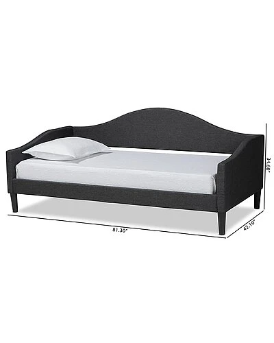 - Subtle and laidback in its design, the Milligan daybed brings tranquil comfort to any bedroom space. Made in Malaysia, this bed is comprised of a sturdy wood frame padded with plush layers of foam and upholstered in smooth fabric. Smooth curved back creates an elegant silhouette while sloped arms encourage carefree relaxation. The Milligan requires assembly and utilizes wood slats for mattress support, eliminating the need for a box spring. Tapered feet complete the look, making the Milligan daybed a remarkable addition to the modern home. Overall Dimensions: 34.60″ High x 81.30″ Wide x 42.10″ Deep; Inside Dimensions(matress size): 75.60″ Wide x 39.60″ Long; Arm Height(from Floor to Top of Side Panel): 26.20″; Legs:7.10″ High;
