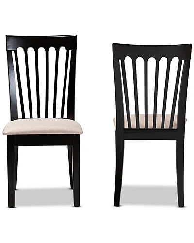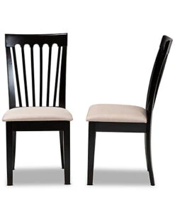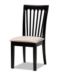 - Timeless design is merged with modern comfort in the Minette dining chair. Made in Malaysia, this solid wood chair features a sleek espresso finish that complements the light polyester fabric upholstery. An optimal balance of comfort and style, the Minette features a plush foam-padded seat, as well as a striking cut-out design on its back for enhanced visual appeal. The Minette dining chair requires assembly and is compatible with a wide range of kitchen color palettes. Whether used for chic dinner parties or casual family dinners, the Minette chair is sure to elevate any dining experience. Dimensions: 38.2″ high x 21.7″ wide x 18.5″ deep; Seating dimensions: 18.5″ wide x 16.1″ deep x 18.5″ high (from Floor); Back: 19.7″ high; Legs: 16.9″ high.