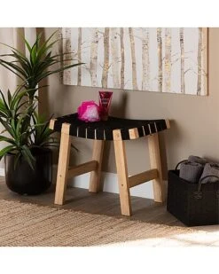 - The unique design of the Nahla accent bench expands your home with smooth, convenient comfort. this cozy piece is comprised of a sturdy wood frame and nylon seat. Its curved seat provides ergonomic comfort while the nylon bands form an orderly grid design to ensure stability and support. Requiring assembly, the Nahla features angled legs that add to the eye-catching silhouette of the bench. A petite yet snug addition, the Nahla accent bench is sure to leave an impression. Overall Dimensions: 17.70in High x 20.90in Wide x 13.80in Deep; Seating Area Dimensions: 20.00in Wide x14.00in Deep x17.30in High; Legs: 14.80in High;