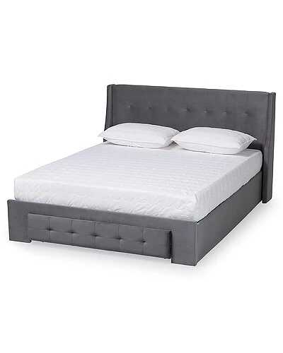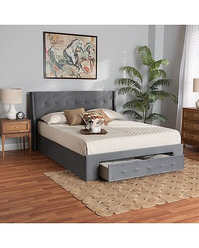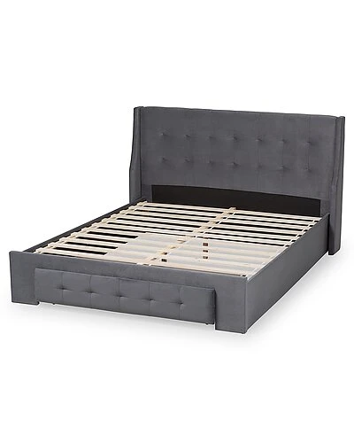 - The incredibly versatile Noella storage bed coordinates your bedroom space with ease. Made in Malaysia, this stunning piece consists of a solid wood frame wrapped in sumptuous velvet fabric and features an elegant wingback headboard. The wide drawer at the footboard serves as a fantastic storage area for clothes, sheets, and more. The Noella requires assembly and utilizes wood slats for mattress support, eliminating the need for a box spring. Grid-tufting adds a graceful touch, making the Noella storage bed a fantastic upgrade to any bedroom layout. Overall Bed Dimensions: 68.90″ W x 84.60″ D x 40.50″ H; Inside Dimensions/Mattress Size Fit: 60.70″ W x 80.30″ L; Overall Headboard: 64.00″ W x 3.70″ D x 40.50″ H; Headboard Panel: 40.50″ H; Distance between each slat: 6.80″; Height from floor to top of footboard: 13.20″;
