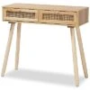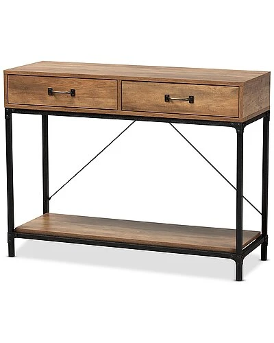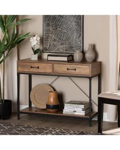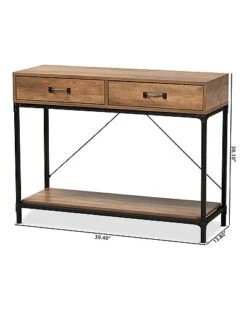 - The robust, bold character of the Norwood console table introduces vintage charm to your space with ease. this handy piece is comprised of a solid metal frame fitted with sturdy wood. Two drawers expand the storage capabilities of your home while the wide, open shelf accommodates larger items and decorations. Requiring assembly, the Norwood is adorned with metal drawer handles that bolsters the modern industrial aesthetic of the piece. Offering remarkable utility in hearty design, the Norwood console table embellishes any interior layout. Overall Dimensions: 30.10″ High x 39.40″ Wide x 13.80″ Deep; Drawer Dimensions: 16.70″ Wide x 11.20″ Deep x 3.50″ High; Open Shelf Dimensions: 37.60″ Wide x 12.00″ Deep x 0.60″ High; Legs: 3.00″ High;