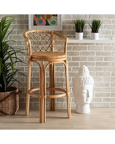 - Endow your space with the serene comfort and refreshing design of the Orchard bar stool. Made in Indonesia, this stool is comprised of a natural rattan frame adorned with woven embellishments. Its rounded frame curves around to form sloping armrests for added comfort while forming a striking silhouette. The Orchard will arrive fully assembled and features an ergonomic footrest to accommodate any occasion. Offering lavish comfort in charming design, the Orchard bar stool is a remarkable addition for any home bar or lounge.