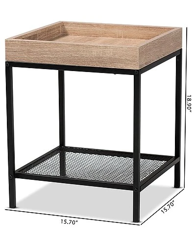 - Boasting the charm of modern efficiency, the Overton end table is a fantastic anchor for any common space. this handy piece is comprised of a metal base fitted with a wood tabletop. The mesh metal shelf serves as convenient storage and display area while reserving the tabletop for daily use. The Overton requires assembly and features raised edges for a more streamlined silhouette. Expanding the potential common areas, the Overton coffee table exemplifies modern interior design. Overall Dimensions: 18.90″ High x 15.70″ Wide x 15.70″ Deep; Open Shelf: 15.70″ Wide x 15.70″ Deep x 12.00″ High; Table Top: 14.60″ Wide x 14.60″ Deep x 1.60″ Thick; Clearance(Floor to Bottom Shelf): 3.10″ High;